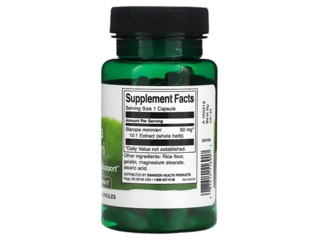 Suplemento herbal a base de Bacopa Monnieri, tradicionalmente utilizada para mejorar la memoria, concentración y reducir el estrés.