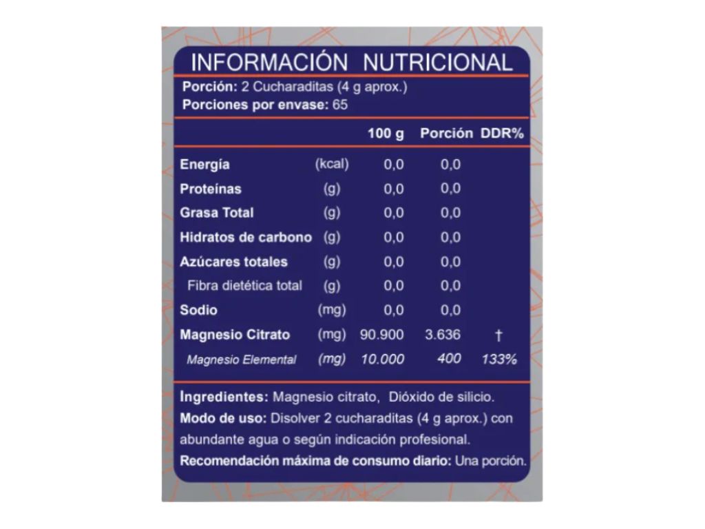 Suplemento en polvo de citrato de magnesio, de alta biodisponibilidad, ideal para favorecer la función muscular, nerviosa y la energía diaria.