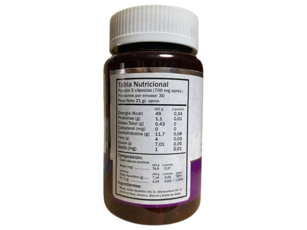 Descubre el poder antioxidante del **Maqui 60 caps**, el suplemento ideal para complementar tu bienestar diario. Nuestro producto, con 60 cápsulas de extracto de Maqui, te ofrece una forma práctica y eficiente de aprovechar los beneficios de esta extraordinaria fruta nativa de Chile. Los principios activos del maqui, como alcaloides y taninos, le confieren propiedades antiinflamatorias, antiespasmódicas, astringentes y analgésicas, convirtiéndolo en un aliado natural para tu salud. Olvídate de las complejas preparaciones tradicionales, con Maqui 60 caps obtienes la potencia del maqui en una presentación cómoda y fácil de consumir.El Maqui, reconocido por sus altas concentraciones de antioxidantes, ayuda a combatir los radicales libres, protegiendo tus células del daño oxidativo. Esto se traduce en una mejor salud cardiovascular, una piel más radiante y una mayor energía para afrontar tu día a día. Además de sus propiedades antioxidantes, el Maqui 60 caps contribuye al alivio de diversas dolencias. Su acción antiinflamatoria puede ser beneficiosa para reducir la inflamación en articulaciones, mientras que sus propiedades antiespasmódicas ayudan a aliviar molestias estomacales. La acción astringente, por su parte, es ideal para tratar problemas digestivos leves.En la medicina popular, el maqui ha sido utilizado por generaciones para tratar una amplia gama de afecciones. Se ha empleado la infusión de hojas secas (o directamente el polvo) para la cicatrización de heridas. La infusión de hojas frescas ha demostrado eficacia en el tratamiento de fiebres, diarreas, disenterías y empachos, así como para aliviar dolores de garganta, inflamación de las amígdalas y úlceras bucales. El jugo fresco de las hojas, tanto por vía oral como tópica, también ha sido utilizado tradicionalmente con estos fines. Sin embargo, con **Maqui 60 caps**, te ofrecemos una forma concentrada y estandarizada de obtener los beneficios del maqui, sin la necesidad de complejas preparaciones.Experimenta la diferencia con **Maqui 60 caps**. Su fórmula cuidadosamente elaborada garantiza la máxima calidad y pureza, asegurando que recibas todos los beneficios del maqui de forma segura y eficaz. Mejora tu salud, fortalece tu sistema inmunológico y disfruta de