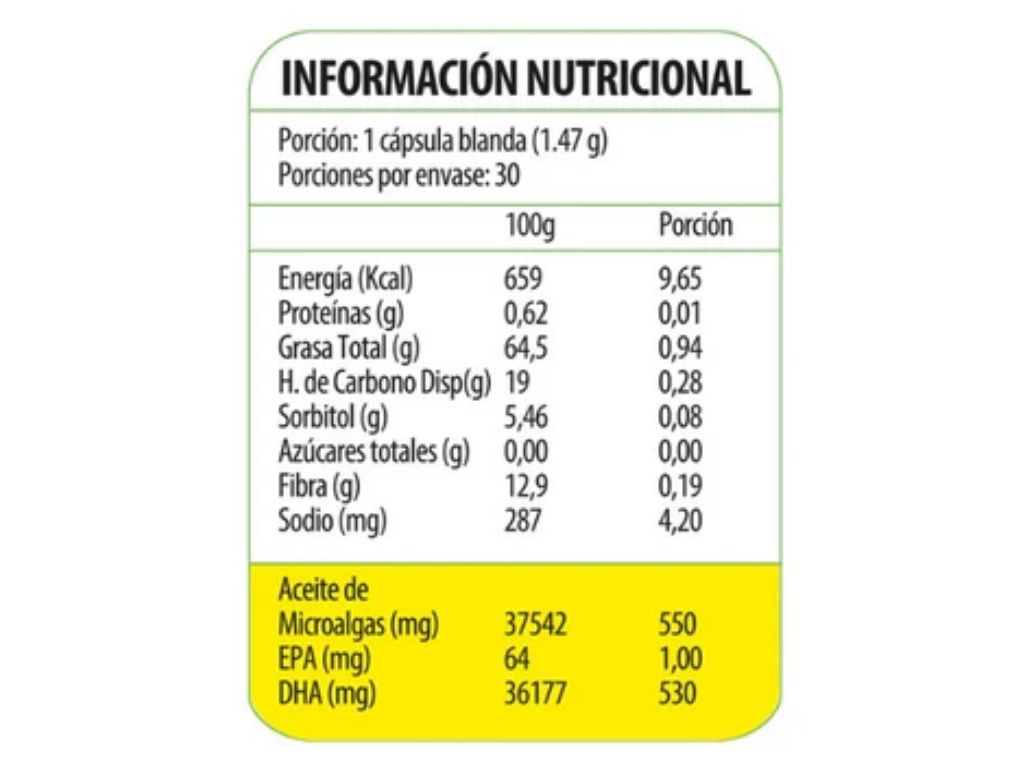 Suplemento de omega-3 de origen vegetal, obtenido de algas, ideal para veganos y vegetarianos. Aporta DHA en alta concentración para el apoyo cerebral y ocular.